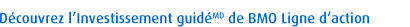 Quels que soient vos objectifs, l'investissement guidé - l'approche méthodique de BMO Ligne d'action en matière de placement - vous aidera à les réaliser. Lorsque vous investissez pour votre avenir, vous devez adopter une méthode rigoureuse qui s'appuie sur une planification approfondie, une sélection judicieuse ainsi qu'une gestion attentive de vos placements, et sur le soutien de professionnels compétents, pour atteindre vos objectifs.